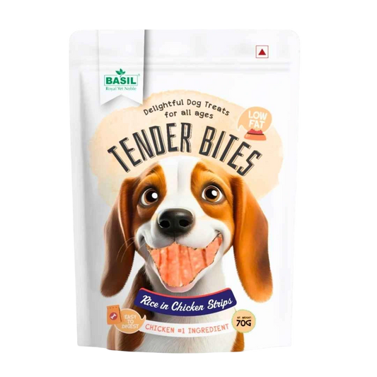 TENDER BITES Rice in Chicken Strips – Healthy & Soft Dog Treat | 70g Pack | High Protein, Gluten-Free, Training & Reward Snack for All Breeds