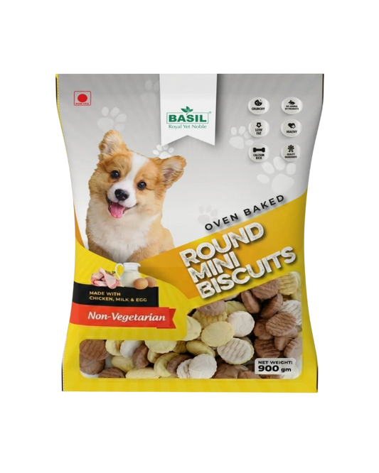 Dog Biscuits, Round Shaped, Chicken Flavor - Suitable for All Breeds, Small Dogs - 900 Grams