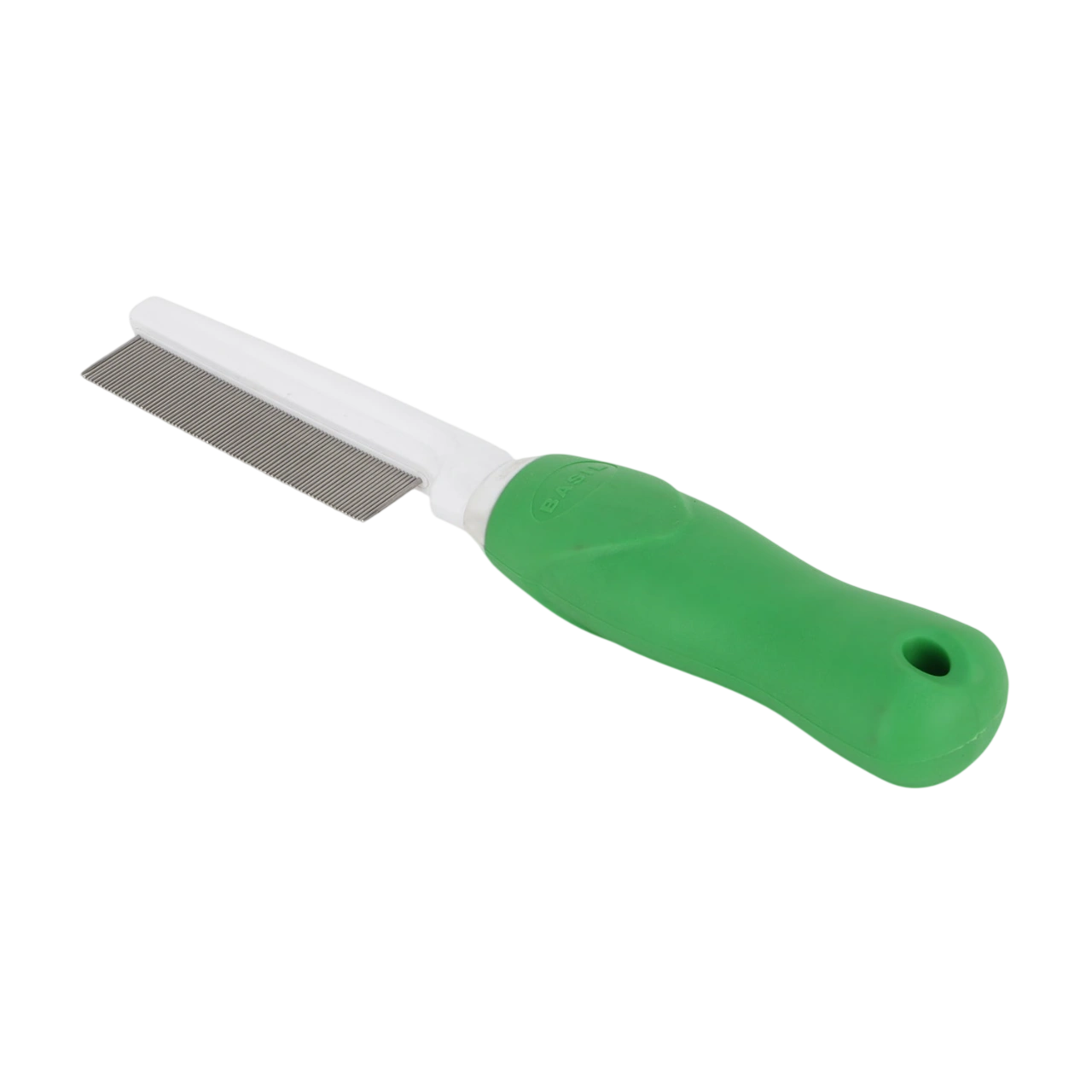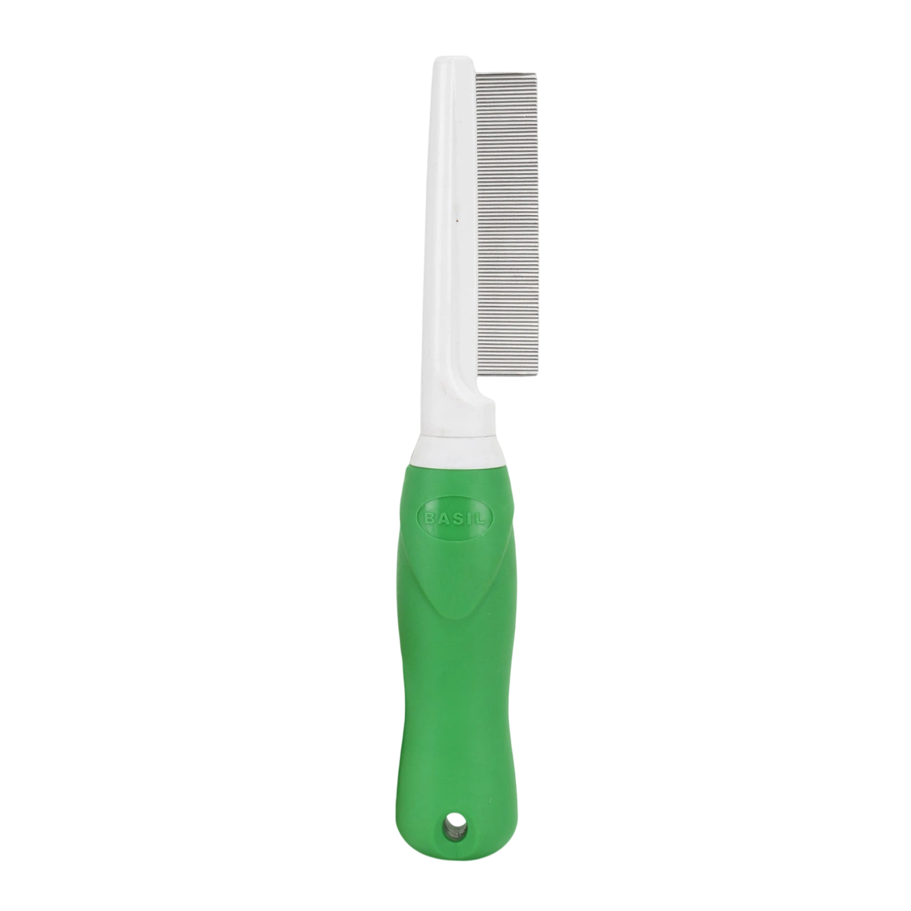 Flea Comb for Dogs & cats by BASIL is designed with closely spaced metal pins to help you safely and effectively remove fleas, ticks, their eggs, dirt, and debris from your petโs coat. Suitable for all breeds and sizes, this comb ensures thorough grooming while the anti-slip rubber grip offers better control. Ideal for dogs and cats alike, it keeps your pet clean, healthy, and protected from unwanted parasites. Use gently on long-haired pets for best results. Key Features โ Flea Comb for Dogs ๐พ Removes Fleas & Ticks: Helps eliminate fleas, ticks, and their eggs for a healthier pet. ๐ถ Suitable for All Breeds: Works effectively on dogs and cats of all sizes. ๐ Closely Spaced Metal Pins: Captures parasites, debris, and dust easily. ๐คฒ Anti-Slip Rubber Grip: Provides comfortable handling and better control. ๐งผ Promotes Clean, Healthy Coat: Perfect for regular grooming and parasite prevention.