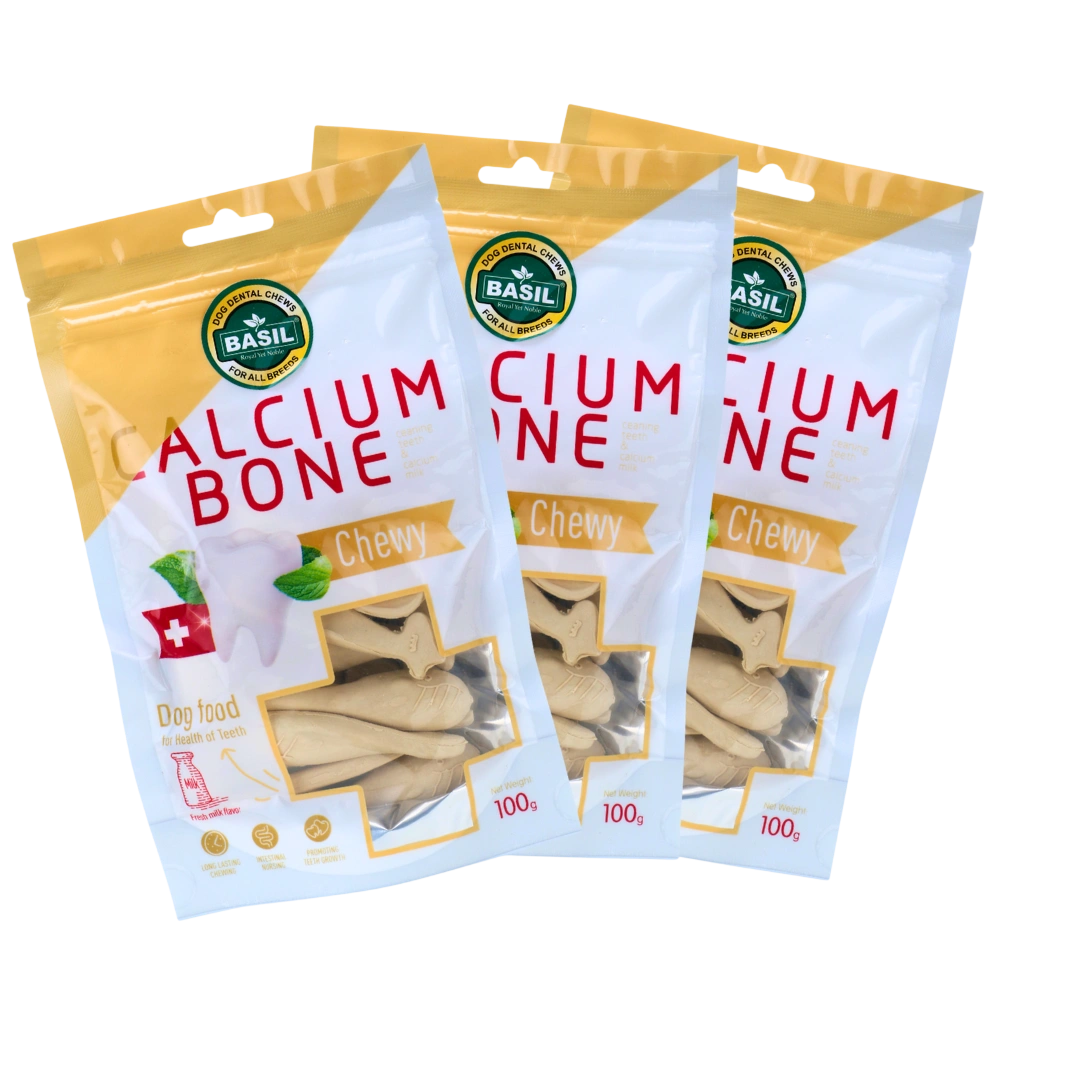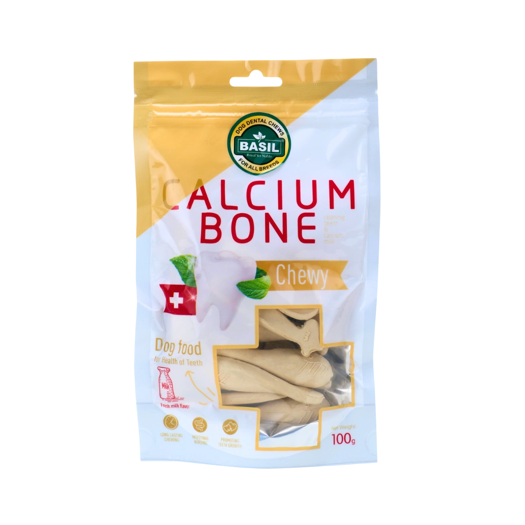 Calcium Bone Treat by BASIL is a flexible, soft, and highly nutritious chew crafted to support strong bones and improve chewing habits in growing puppies and adult dogs. Enriched with essential calcium, this innovative 360Β° treat lasts longer than regular snacks and helps maintain cleaner teeth with its bristle-like texture that scrapes plaque and tartar as your dog chews. Key Features β Calcium Bone Treat 𦴠High-Quality Ingredients: Safe, nutritious, and pet-approved. π Flexible & Soft Chew: Gentle on teeth and lasts longer than regular treats. π₯ Calcium Enriched: Promotes stronger bones and healthy growth. πΎ Ideal for Growing Puppies: Perfect daily snack for developing pups. π¦· Supports Dental Hygiene: Helps remove plaque, tartar, and bad breath.