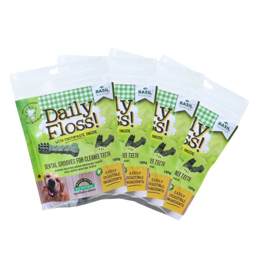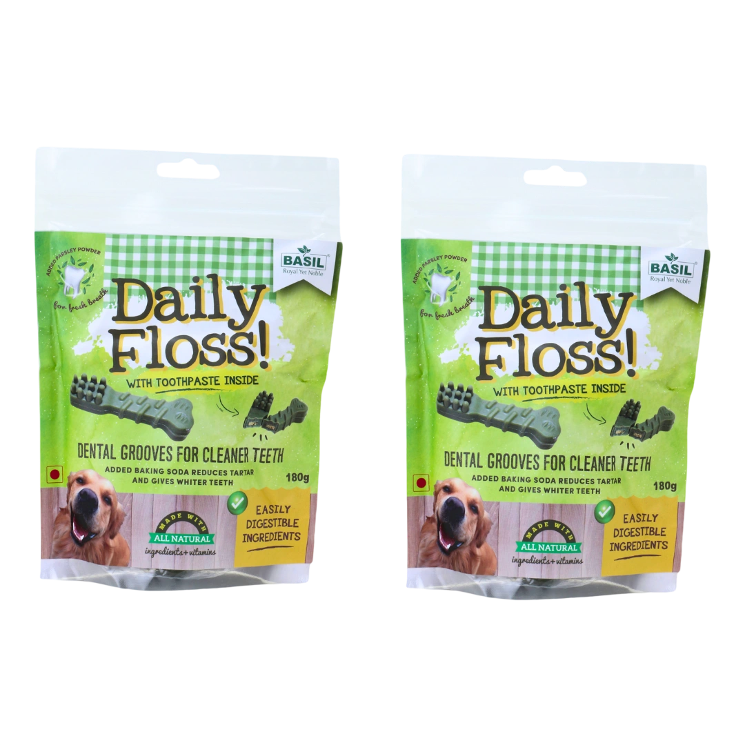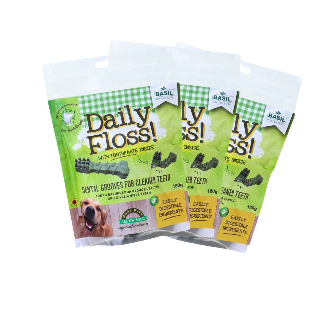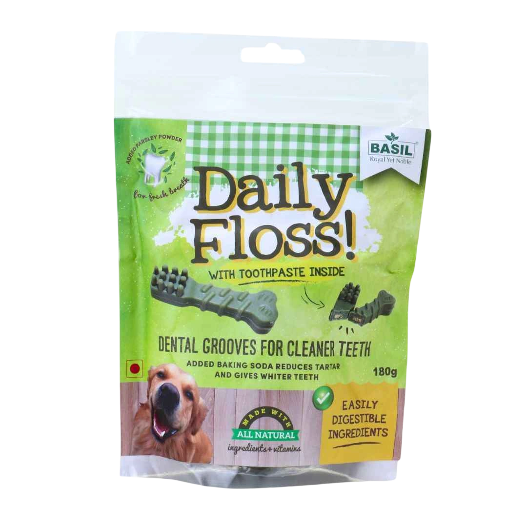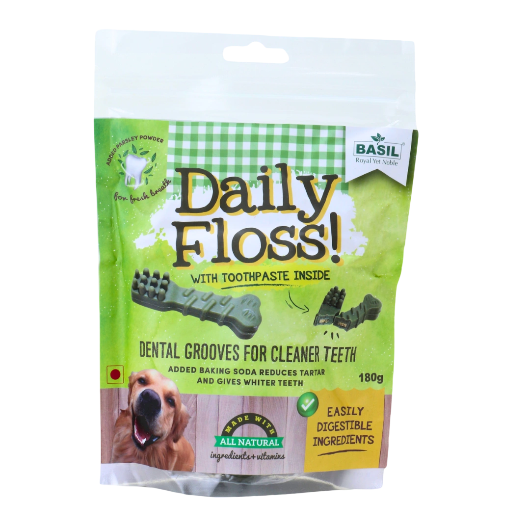 Toothpaste Filled Chew Treat by BASIL is specially crafted to support your dog’s daily dental hygiene with every bite. Enriched with baking soda for whitening and tartar reduction, parsley powder for fresh breath, and natural ingredients for safe digestion, this chew treat works as an excellent top-up between brushing sessions. Perfect for dogs who resist brushing, the dental grooves help clean teeth effectively while your pet enjoys a delicious, healthy chew. Key Features – Toothpaste Filled Chew Treat 🦷 Added Baking Soda: Helps reduce tartar buildup and promotes whiter teeth. 🌿 Parsley Powder: Naturally freshens breath for long-lasting oral freshness. 🌱 Natural Ingredients + Vitamins: Safe, healthy, and nutrient-rich formula. 🍽️ Easily Digestible: Gentle on the stomach and suitable for daily chewing. 🔍 Dental Grooves: Effectively scrape off plaque and promote cleaner teeth.