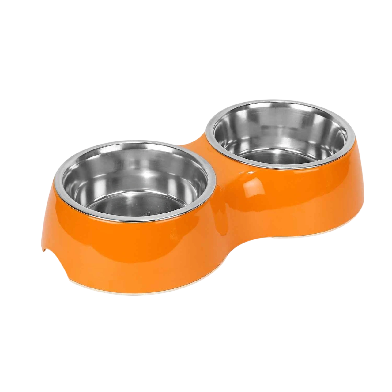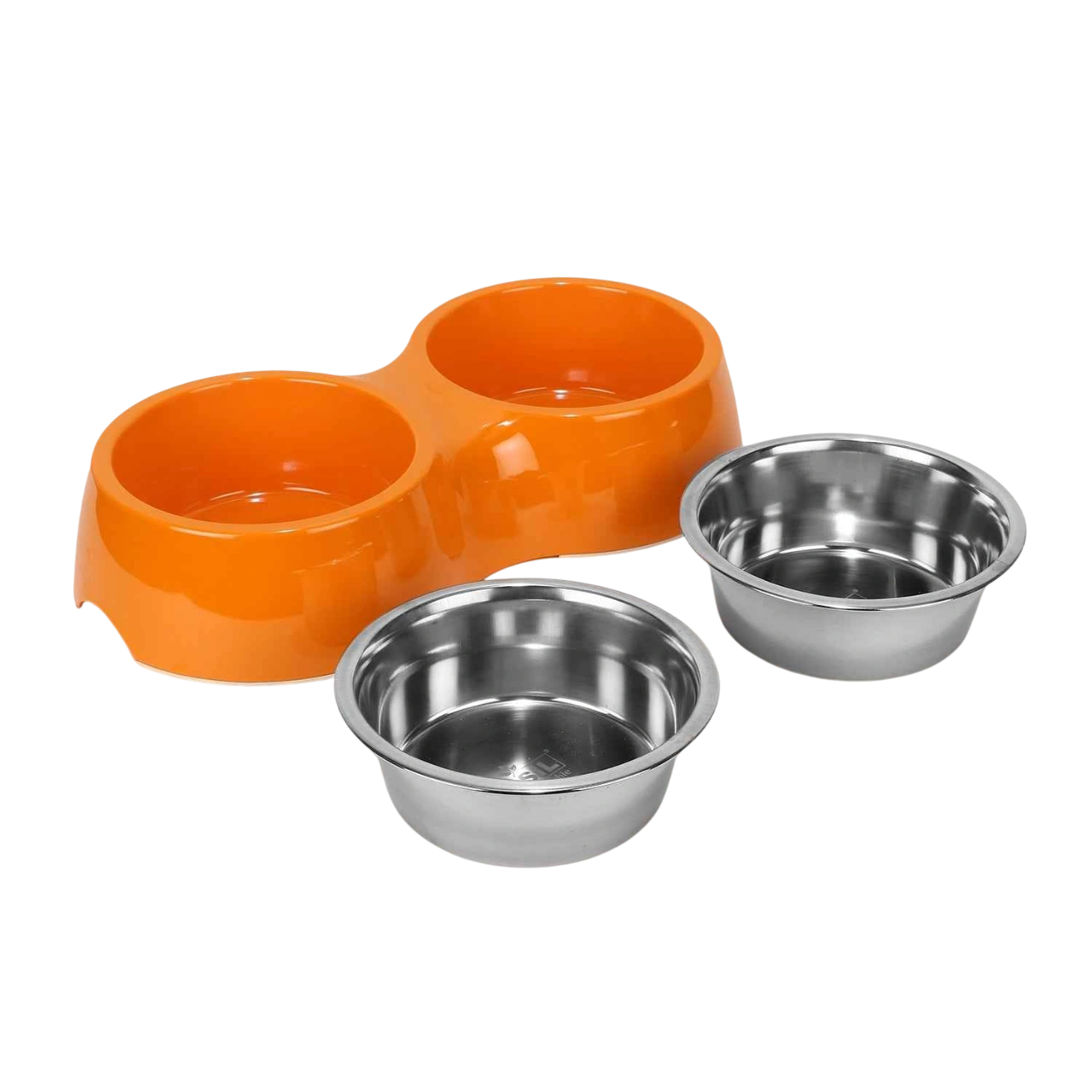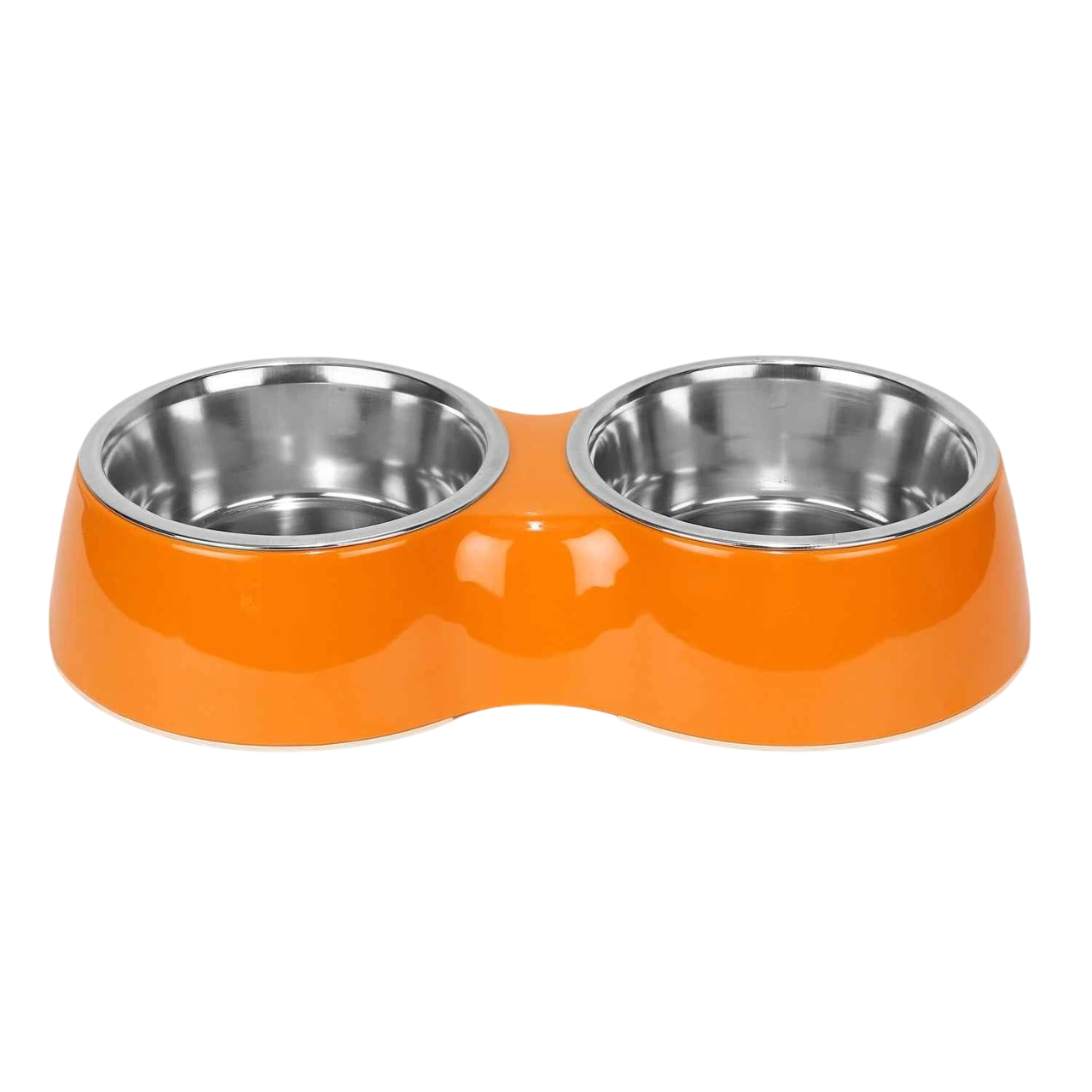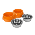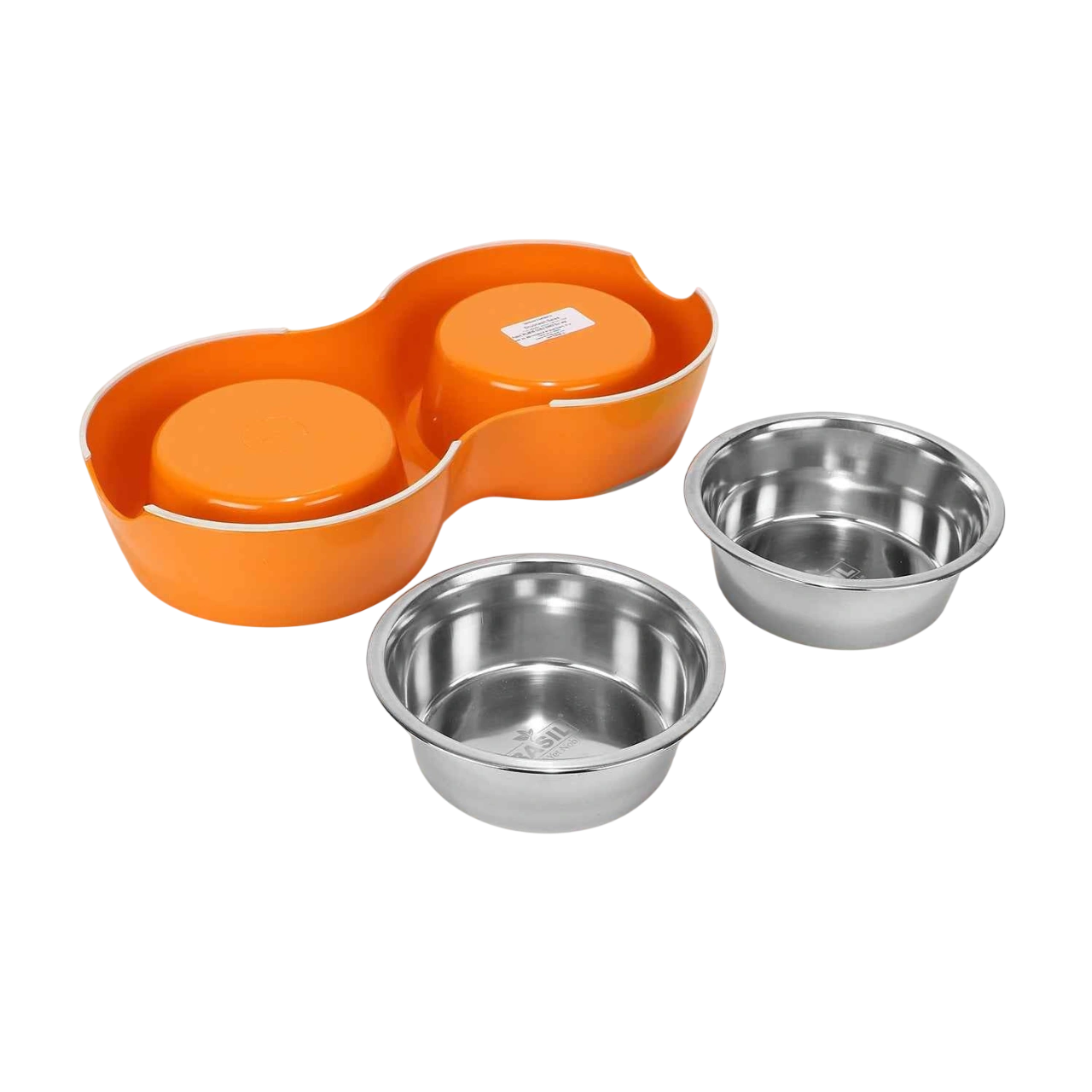 Double Bowl Feeding Set for Dogs & Puppies (Orange)