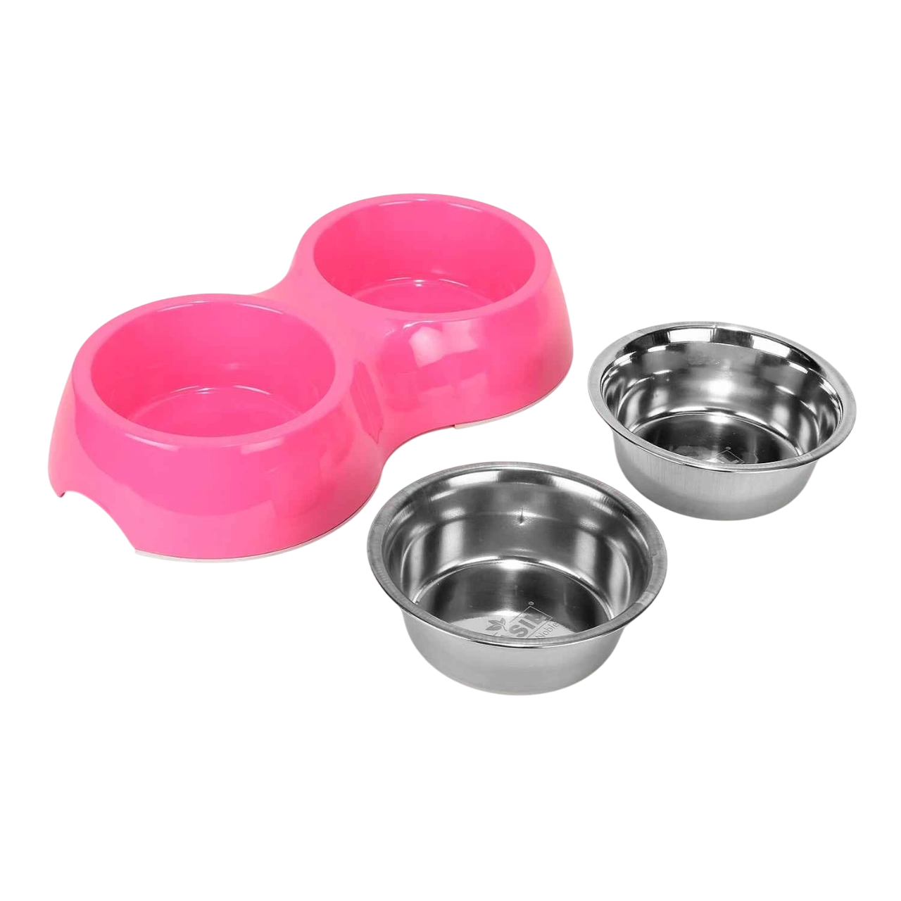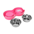 Double Bowl Feeding Set for Dogs & Puppies (Pink)