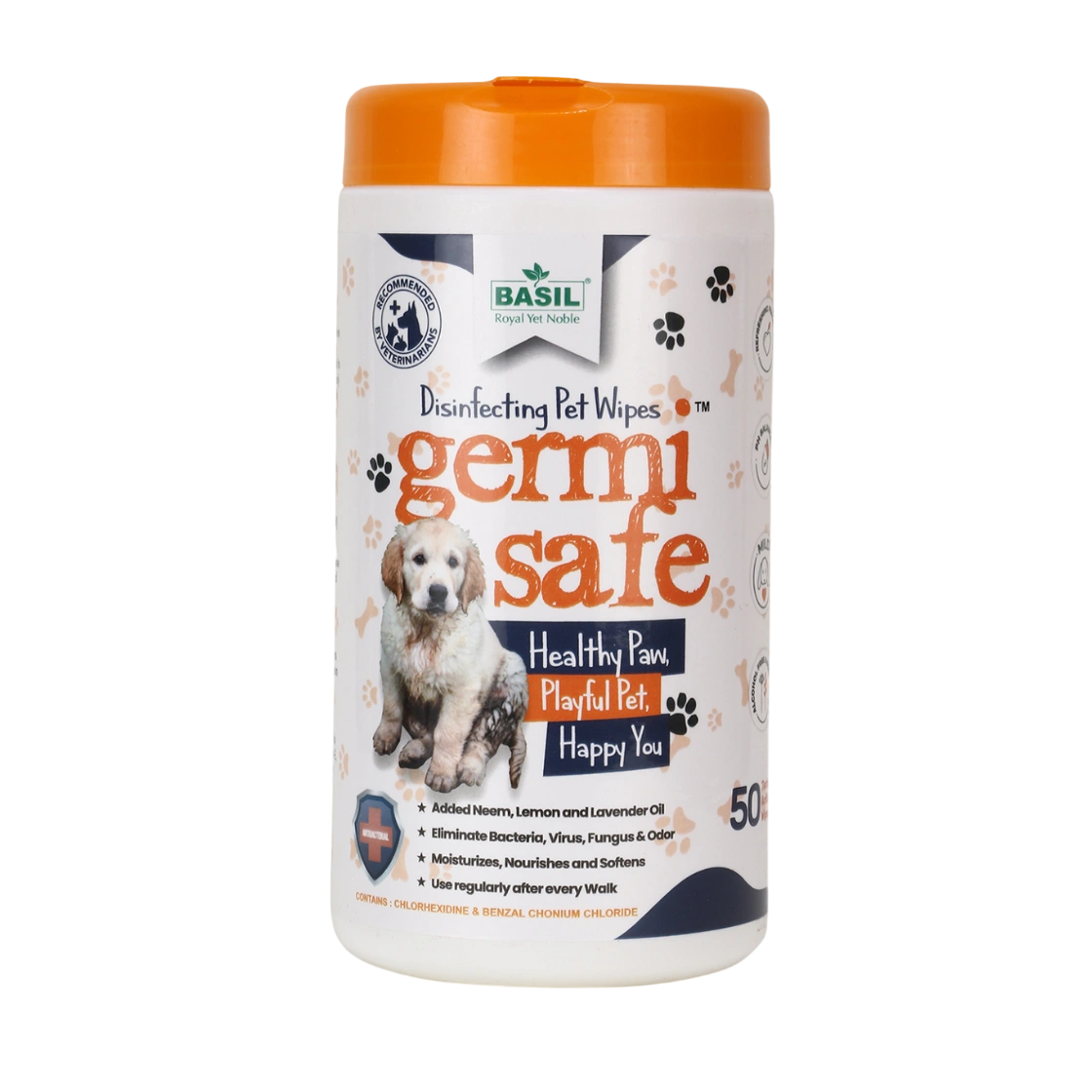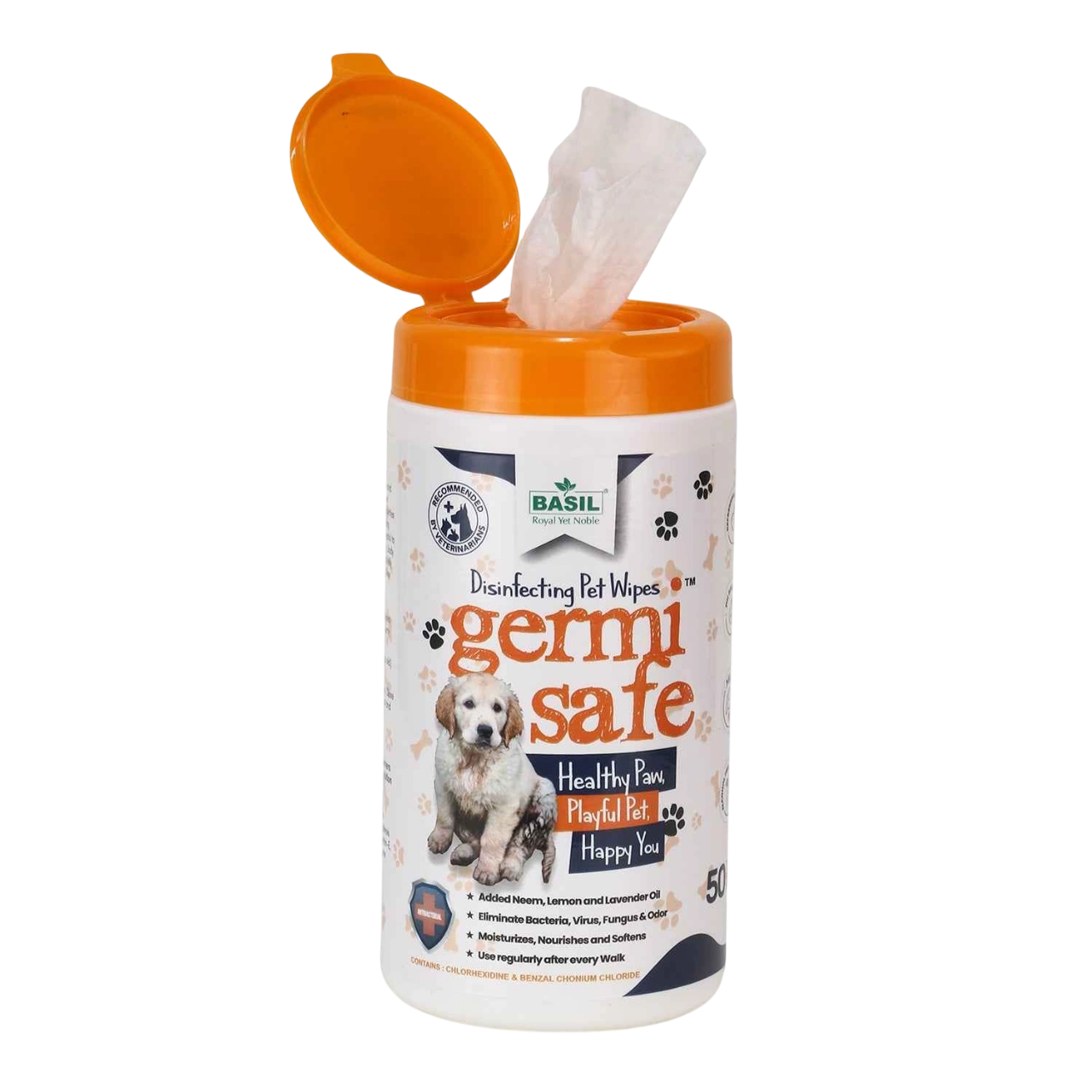 Germisafe Pet Wipes by BASIL are specially formulated with neem, lemon, and lavender oil to clean, deodorize, and disinfect your pet with just one wipe. Designed with strong antibacterial and antifungal properties, these wipes effectively eliminate bacteria, viruses, fungus, and odour from your pet’s paws, coat, and hygiene areas. Perfect for use after every walk or between baths, they also moisturize, nourish, and soften your pet’s skin while keeping them fresh and germ-free. Key Features – Germisafe Pet Wipes 🌿 Neem, Lemon & Lavender Oil: Natural oils cleanse, soothe, and deodorize. 🦠 Eliminates Germs: Kills bacteria, viruses, fungus, and odour instantly. 💧 Moisturizing & Nourishing: Softens skin and prevents dryness or irritation. 🚶 Perfect After Every Walk: Ideal for cleaning paws and body post-outdoor activity. 🧼 Hygiene Care: Safely disinfects private areas after your pet relieves itself. 🐶🐱 For All Pets: Suitable for dogs, cats, and other small animals.