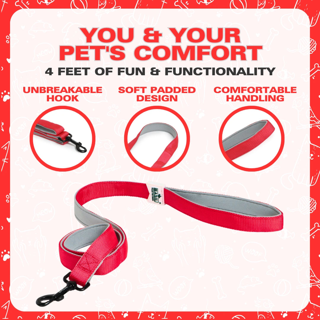 Leash for Dogs that’s built for comfort, safety, and everyday style! The BASIL Solid Red Leash is made from durable, high-strength nylon with a secure metal clasp that keeps your pet safely by your side. Its soft, ergonomic handle gives you a comfortable grip, while the flexible, tangle-free design ensures smooth, hassle-free walks. Perfect for dogs, cats, and puppies of all sizes, this vibrant red leash adds a pop of style to every outdoor adventure!