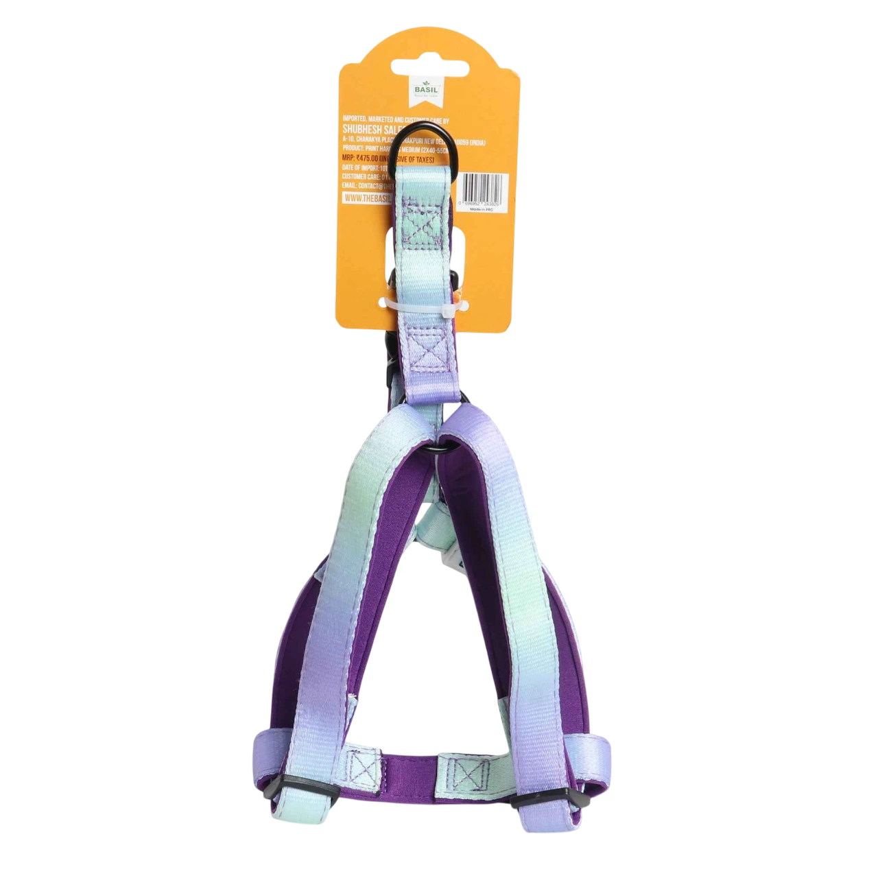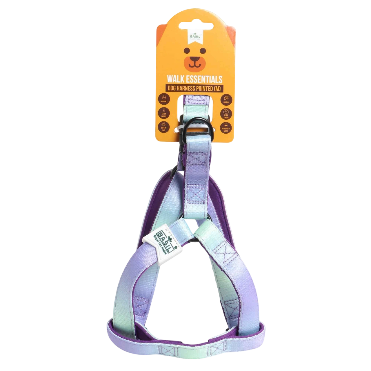 Introducing the BASIL Printed Dog Harness – Green & Purple, a stylish and durable accessory designed for walking and training dogs of all sizes. This harness combines a vibrant green and purple print with high-quality materials to ensure both aesthetic appeal and functionality. The adjustable straps provide a secure and customized fit, while the comfortable padding ensures ease during long walks. Whether you're training a puppy or taking your dog for a daily stroll, this harness offers the perfect blend of style and performance.