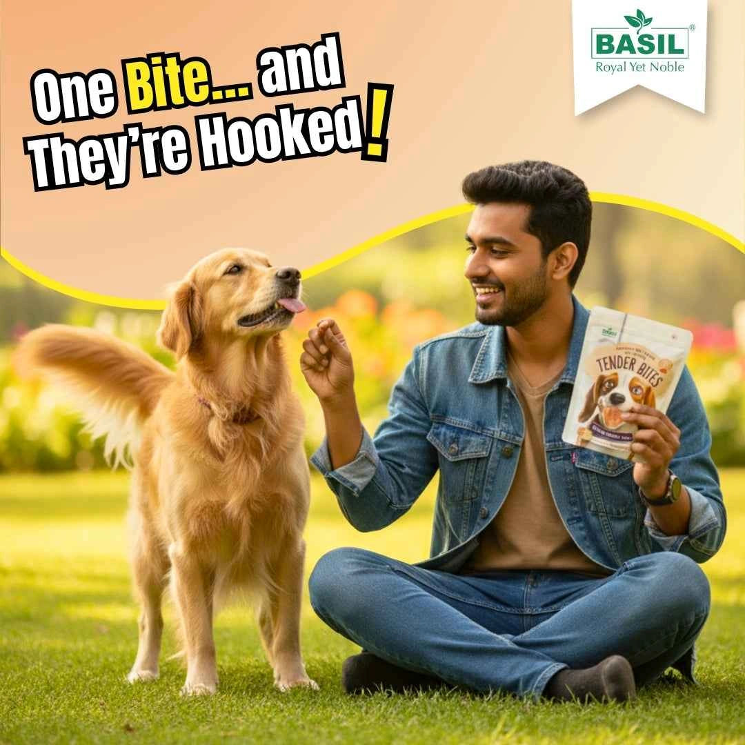 Give your furry friend the taste they’ll drool for with BASIL TENDER BITES – Rice in Chicken Strips.