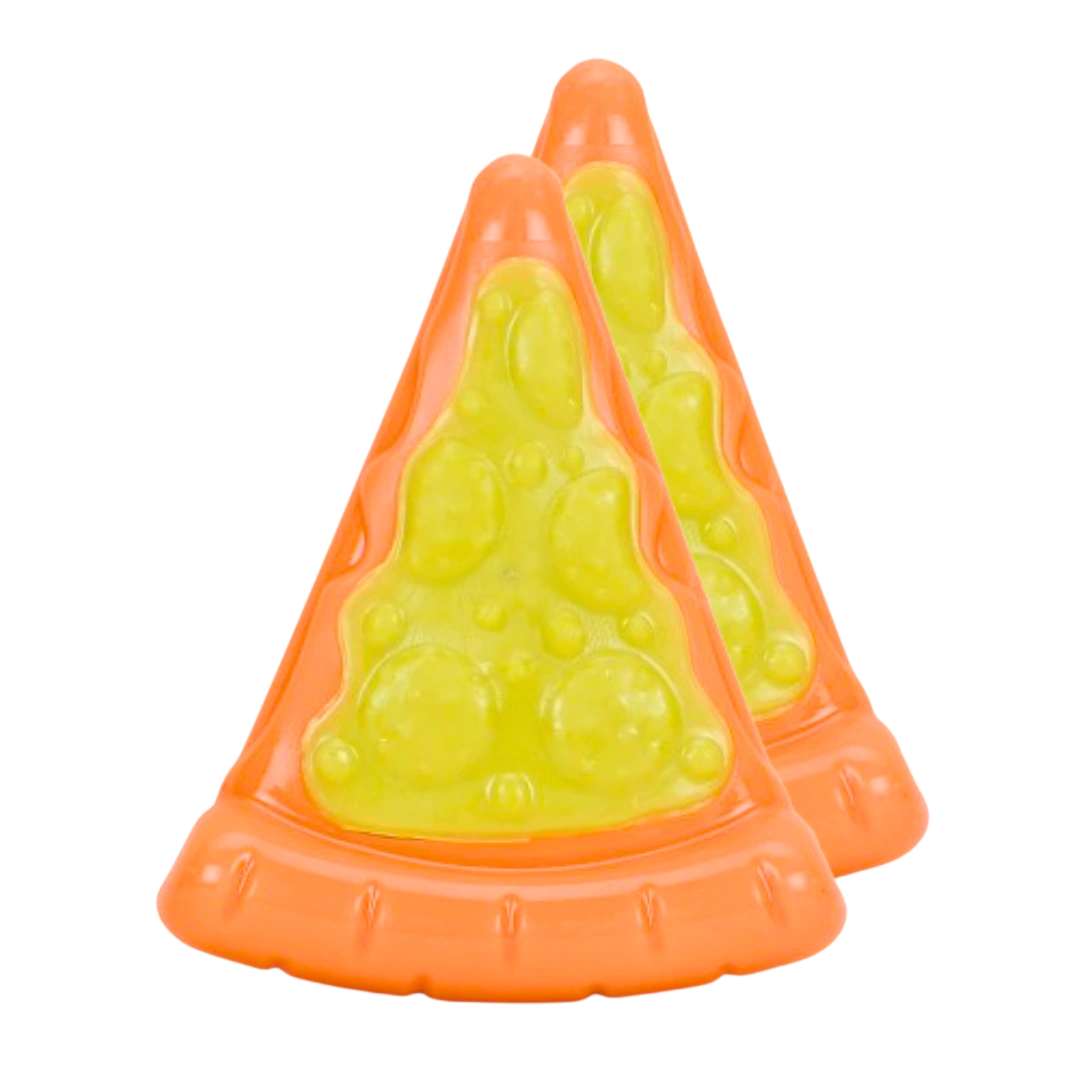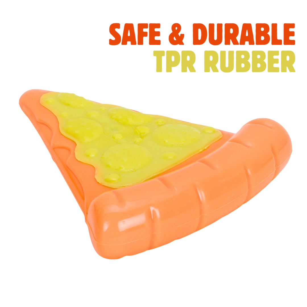 - Interactive Design: Pizza slice shape with textured nylon topping for added fun.